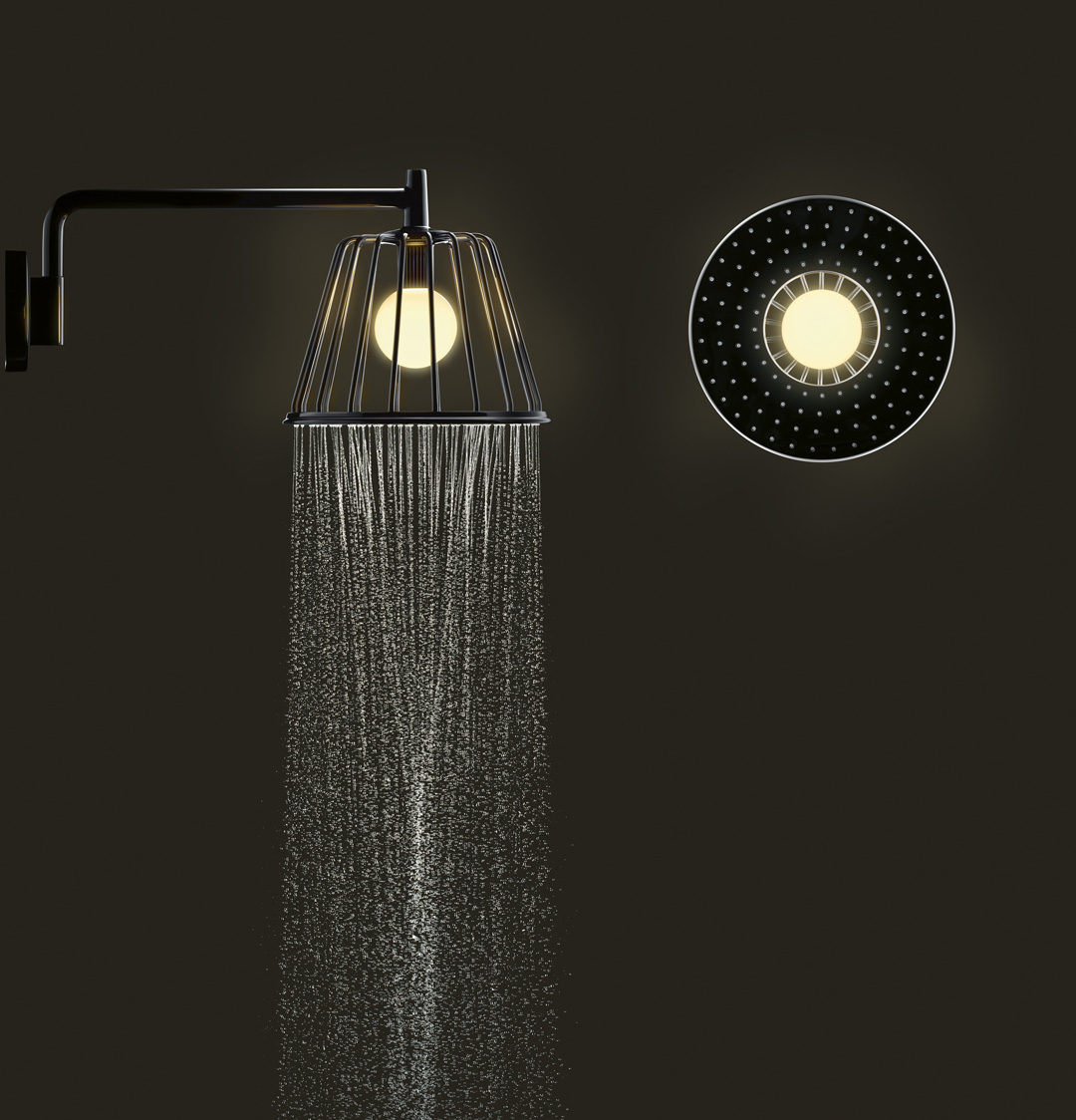 Oki Sato, kreativer Kopf des japanischen Designstudios Nendo, lässt mit der Axor LampShower Licht und Wasser auf magische Weise zu einer Einheit werden. „Sie ist ein Hybrid aus Lampe und Dusche“, so der 36-jährige Sato. Die Leichtigkeit der Formensprache und die Kombination von Licht und Wasser verleihen der Dusche eine erweiterte sinnliche Dimension. Dazu tragen ein breiter Regenkranz und ein warmes Ambientelicht bei. „Die natürliche Verschmelzung von Licht und Wasser in Form von der neuen Axor LampShower verleiht dem Badezimmer mehr Wohnlichkeit und leistet somit einen wichtigen Beitrag zur Entschleunigung eines zunehmend hektischen Alltags”, erklärt Philippe Grohe.