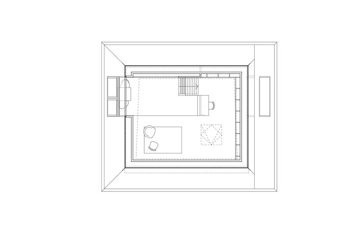 Konstruiert ist das auf einem Betonsockel lagernde Haus aus 136 Massivholzelementen, die mit allen Anschlüssen und Aussparungen vorgefertigt wurden. Hier und da ergänzen Stahlträger das Tragwerk. Holz wurde wegen seiner günstigen CO2-Bilanz gewählt, außerdem eignet sich das Material, das nur geschliffen, gelaugt und geseift wurde, für die vielseitige Interpretation des Innenraums. Die Grundrisse des „veredelten Rohbaus“ verschränken sich auch in der Höhe, der diagonale Blick lässt die Räume größer erscheinen. Man befindet sich in einem Gehäuse, dessen allseitige Holzbegrenzungen den Unterschied zwischen Richtung, Dimension, Fläche und Raum beiläufig überspielen. Jeder Winkel wird genutzt, man kann bis unter den Spitzboden steigen, auf Treppen und Fensterbänken sitzen, sich einen Arbeitsplatz einrichten, eigentlich heißt das nur: intensiv Wohnen.