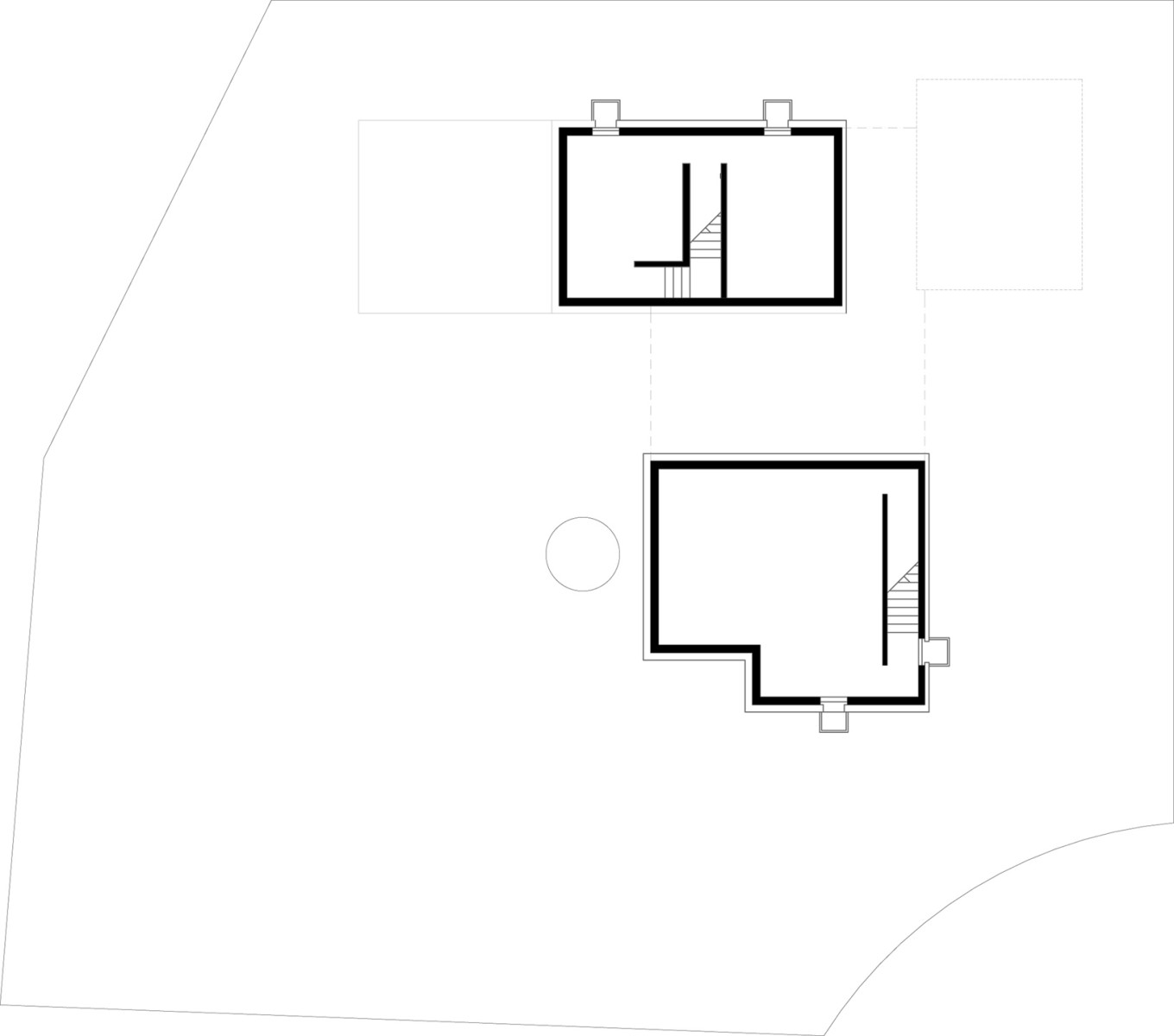 In beiden Häusern nimmt ein Kern Treppe, Nasszellen und Küchentresen auf, darum herum ordnen sich die übrigen Räume. Bei dem schlankeren Baukörper reihen sich die Funktionen erwartungsgemäß linear, vor allem die Schlafräume im Obergeschoss, bei dem fast quadratischen säumen die Zimmer den innen liegenden Kern. Raumhohe Fenster verbinden das Innere mit dem Außenraum, an den Ecken sind windgeschützte Terrassen eingeschnitten.
