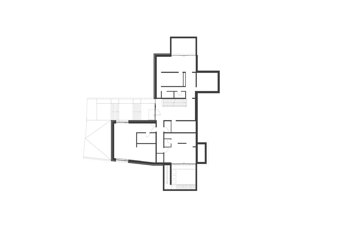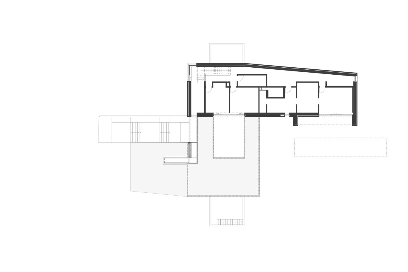 Ausgehend vom Vokabular der klassischen Moderne haben die Architekten die Bauaufgabe „phänomenologisch“ gelöst, das heißt, sie reagierten in einem dialektischen Prozess auf die konkreten Herausforderungen der Situation. Das Haus besitzt also keine konventionelle Kubatur, die von einem Steildach abgeschlossen und irgendwie auf das Grundstück gestellt wird, sondern es setzt sich als freier Baukörper mit der Topografie auseinander, was die Qualität der inneren Wegeführung erklärt.