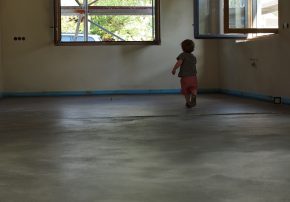 Als Konstruktion wählten die Basler Architekten Reuter Raeber eine Mischbauweise – der statischen Notwendigkeit und räumlichen Bedürfnissen entsprechend. Der Fußboden im Erdgeschoss, die Feuerstelle und die zwei tragenden Außenwandscheiben wurden aus Beton gefertigt: Er entspricht dem steinigen Untergrund und zeigt sich mit robuster Oberfläche.