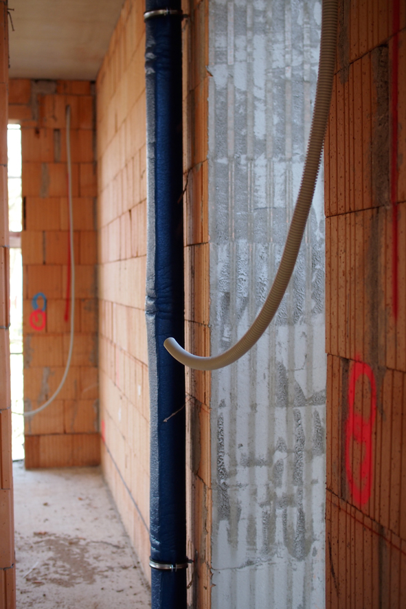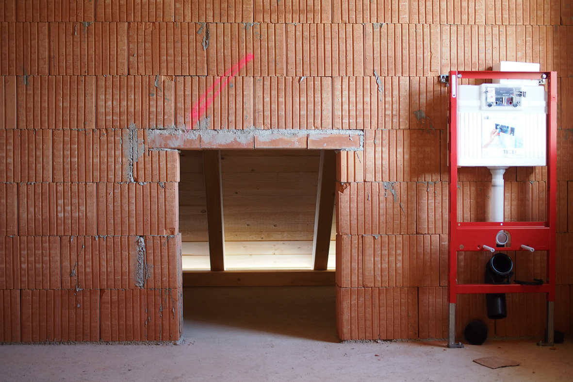 Und das im Januar! Wer hätte gedacht, dass die Temperaturen so mild und unserer Planung gegenüber so „wohlgesonnen“ sein würden … Bei lockeren 12 Grad ist das Haus aus seinem Winterschlaf erwacht, und es wird inzwischen fleißig gebohrt, verlegt und montiert. Die ersten Spülkästen hängen schon und für nächste Woche haben sich die Innentüren bereits angekündigt – also die Zargen, die Türblätter kommen erst ganz zum Schluss an die Reihe.
