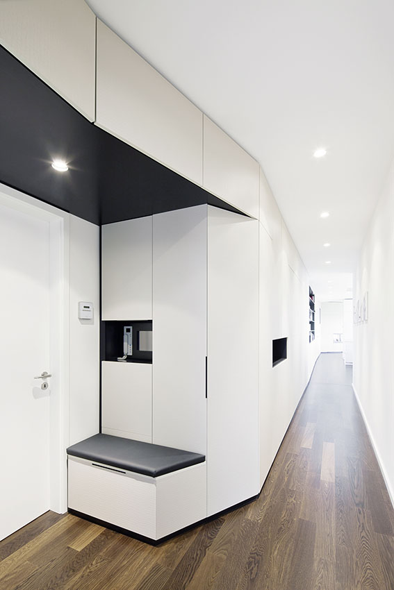 Wer Platz hat, der empfängt damals seine Besucher in einer Diele oder Halle, mit sauber poliertem Steinboden, assistierenden Kleinmöbeln und Garderobe zum Ablegen, einem Sessel zum ‚Ankommen’ und dem einen oder anderen schmückenden Accessoire aus Kunst oder Pflanzenwelt, um einen ersten Eindruck von Haltung und Stil der Bewohner zu vermitteln. Dies hat sich seit Generationen nicht geändert, und auch im 21. Jahrhundert beginnt anspruchsvoll konzipierte Wohnarchitektur ihr inneres Raumgefüge mit einem ‚Eingangsbereich’, der eben nicht reine Durchgangszone, sondern ein spezifisch gestalteter Schwellenraum zum Privaten sein soll – und das gilt natürlich ebenso für die hochwertige Wohnung. Diese vorgeschaltete Zone muss sowohl einen Kontakt an der halboffenen Türe, ein kurzes ‚Hineinbitten’, das alltägliche Hinein und Hinaus als auch die atmosphärische Einstimmung der Gäste auf die von ihm erschlossenen Wohnbereiche und deren jeweilige Stilform adäquat bewältigen.