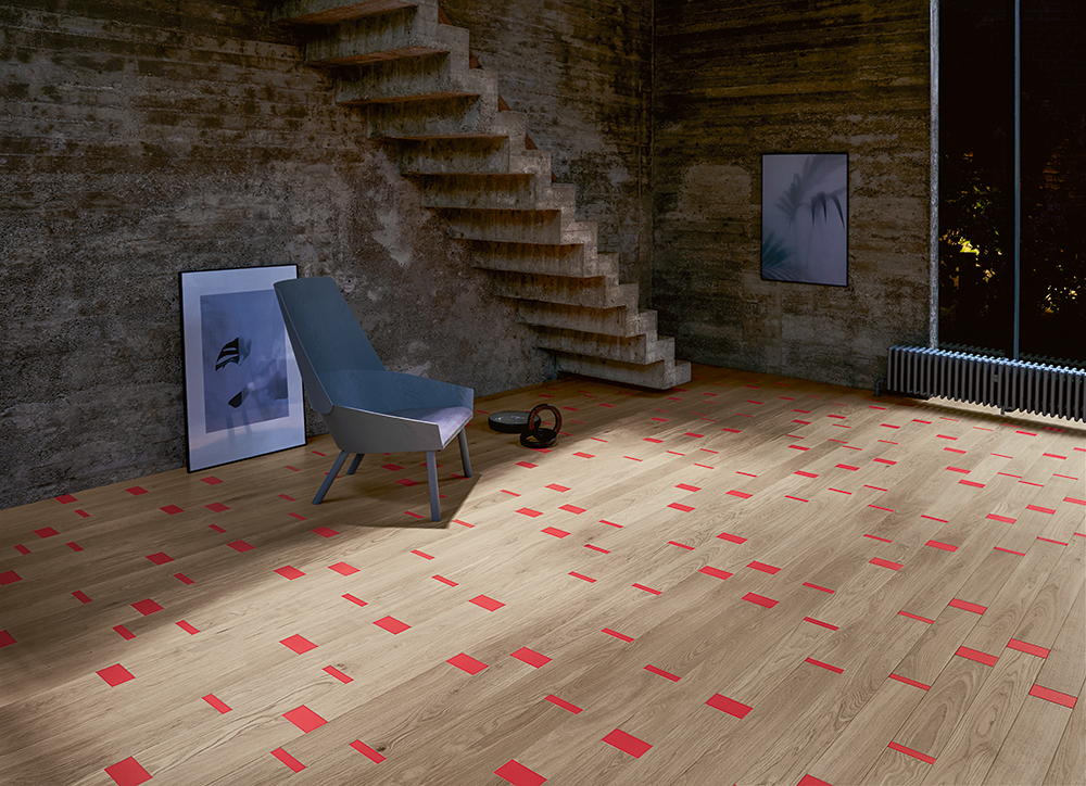 Holzfußböden sind in Europa seit dem Mittelalter bekannt. Waren es erst rohe Dielen, die nebeneinander gelegt wurden, entwickelte sich ab dem 16. Jahrhundert aus diesen Bretterböden das Parkett als repräsentativer und bewusst gestalteter Bodenbelag: Das Holz wurde unterschiedlich abgelängt, gebeizt, diverse Holzsorten zu Mustern kombiniert. Es hat also Tradition, das 2018 vorgestellte Parkett des Coesfelder Parador GmbH „Open Frameworks Design Edition by Hai Teherani.“ Und ist doch neu: Die vier unterschiedlich großen Dielenelemente in den Farben OAK white, OAK natural und OAK grey sind dank einer neuartigen Konstruktion über eine lose Feder an den Kopfseiten jeweils untereinander kombinierbar und bieten zahlreiche Gestaltungsmöglichkeiten. Erweitert werden die Variationsmöglichkeiten zusätzlich durch die „Links“: Die Verbinder in vier Größen sowie sechs Farben führen die Kombinationsmöglichkeiten ins Unendliche. „Toll an den unzähligen Möglichkeiten, die in der Kombinatorik liegen“, sagt Architekt und Designer Hai Teherani selbst, „ist, dass jeder Planer mit diesem Baukasten seinen eigenen Ausdruck im Boden schaffen kann. Als Architekt arbeite ich in den verschiedensten Oberflächen eines Gebäudes – außen und innen – mit Rastern. Bei einer Fassade ist die Kombination verschiedener Formate, Farben, Materialien ein selbstverständliches Ausdrucksmittel. So ist es für mich konsequent, diese Möglichkeiten auch im Boden anzubieten, mit unserer neuen Kollektion ,Open Frameworks‘ bieten wir jedem Planer die Möglichkeit, selbst zu entscheiden, welche Formate und Farben er miteinander kombinieren möchte.“