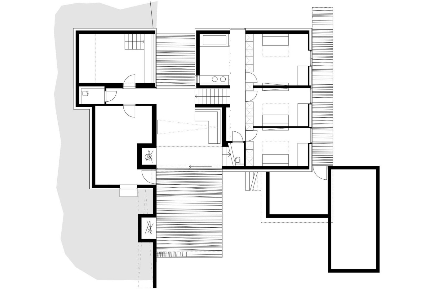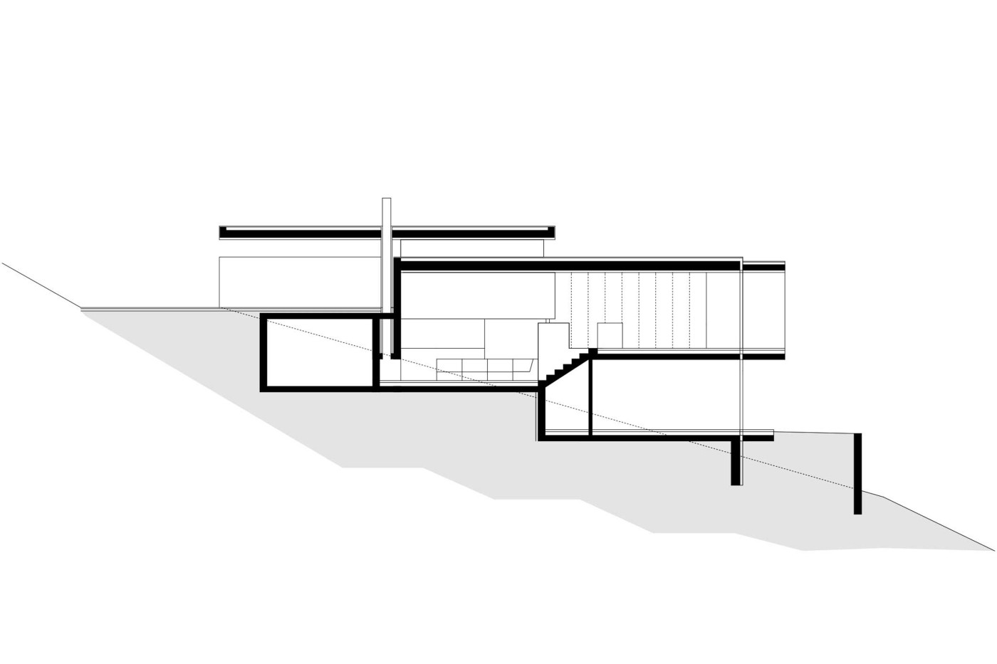 Das steil zur Donau hin abfallende Randgrundstück liegt am Fuße des Pöstlingbergs im Nordosten von Linz. Es ist von Wald, Wiesen und einem Obstgarten umgeben. Ziel war es deshalb, beim Entwurf die Einzigartigkeit der Landschaft zu berücksichtigen und sich gegen eine bestehende Wohnsiedlung abzuschotten, ohne den Ausblick über das Donautal ins Alpenvorland zu beeinträchtigen. Der Hauskörper folgt mit versetzten Geschossebenen der Topografie, sie kokettieren mit dem Außenraum. Das Zentrum bildet ein gestockter Sichtbetonkörper, um den sich die Erschließung entwickelt, er durchstößt alle Ebenen und ist im ganzen Haus zu spüren. Er interpretiert die Lage des Hauses in der am Donaudurchbruch von Felsen dominierten Landschaft.