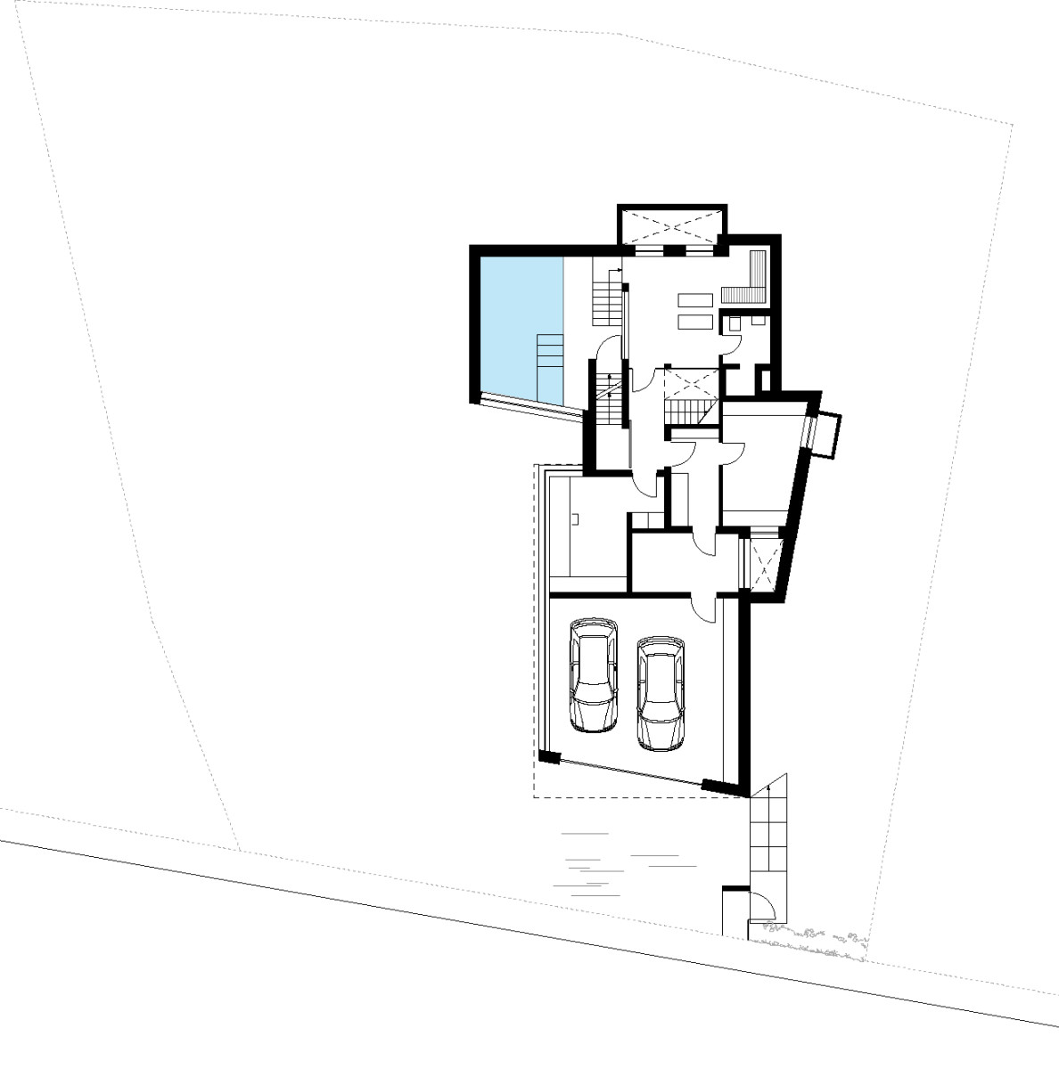 Gestapelte Funktionsebenen, leicht verdreht, schienen uns die richtige Antwort auf die Enge des Grundstücks, die Ausblicke, das umfangreiche Raumprogramm.